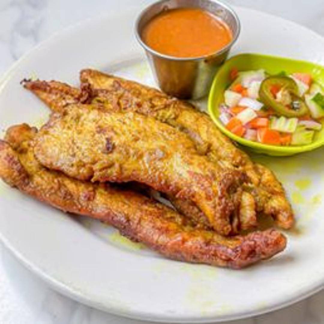 Grilled marinated chicken skewers served with a creamy peanut sauce. The chicken is typically marinated in a blend of spices like turmeric, cumin, and coriander.