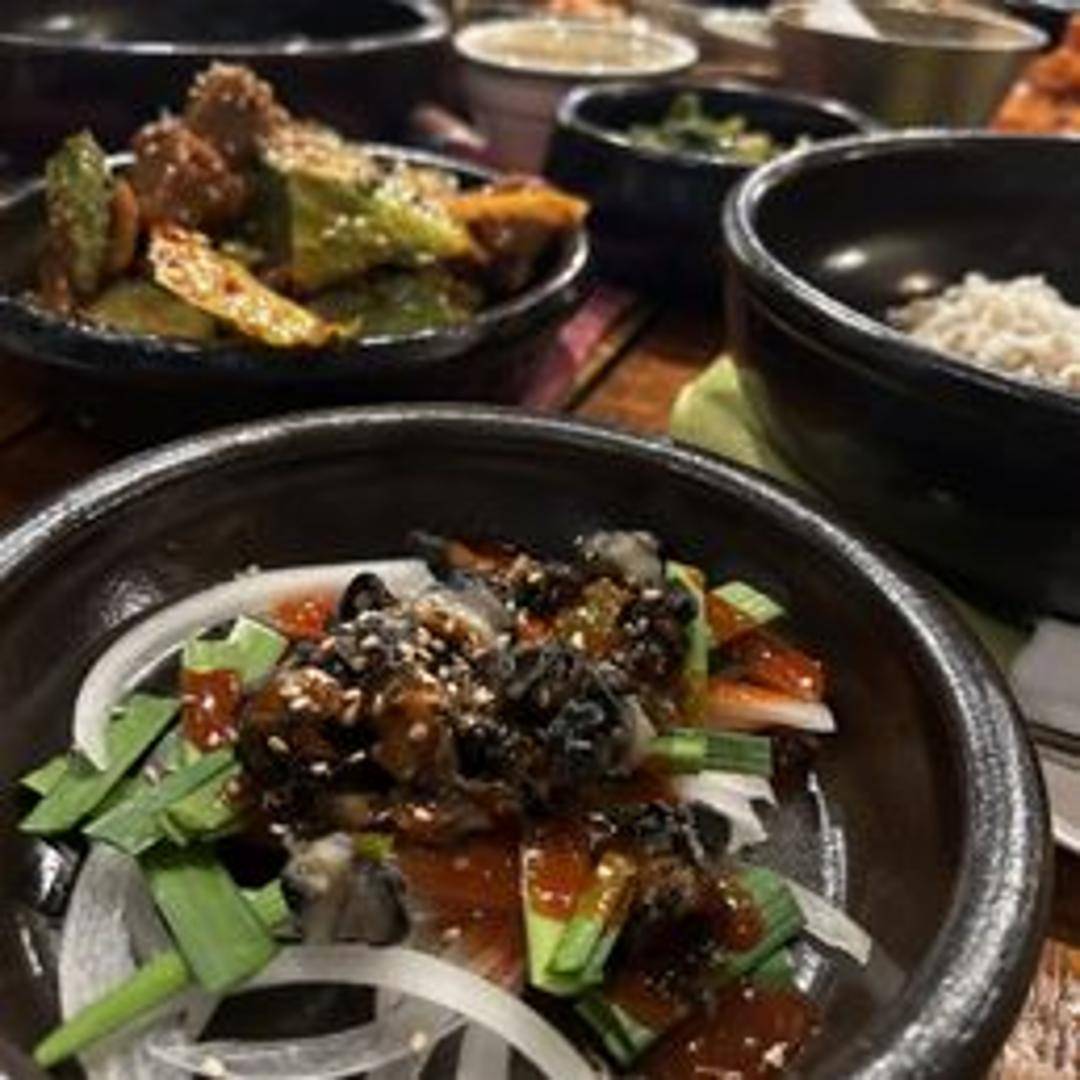 Freshwater snails prepared in a savory sauce. Chewy texture with a slightly sweet and earthy flavor. A unique and traditional Korean delicacy, often enjoyed as an appetizer or side dish.