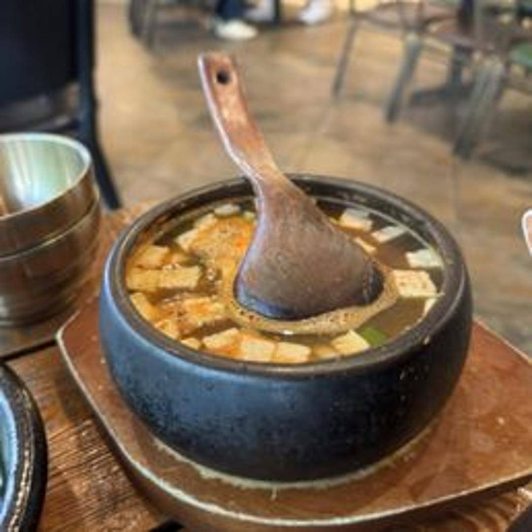 A hearty and comforting Korean stew made with a rich, fermented soybean paste (doenjang) base. Contains a variety of vegetables, tofu, and often meat, simmered to create a deep, umami flavor. Expect a thick and flavorful broth.