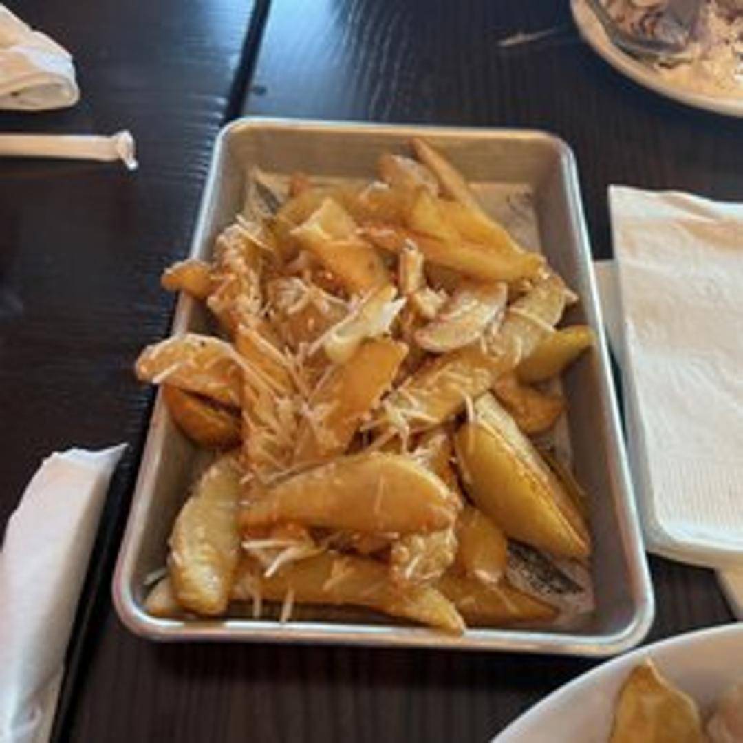 Crispy chicken wings tossed in a rich garlic parmesan sauce, served with your choice of dipping sauce.