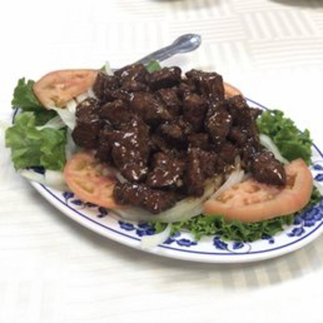 Tender, bite-sized cubes of high-quality beef, expertly wok-seared to a perfect golden-brown. This popular dish is often prepared in a savory and aromatic sauce, featuring ingredients like garlic, black pepper, or onions, offering a delightful combination of succulent texture and rich flavor.