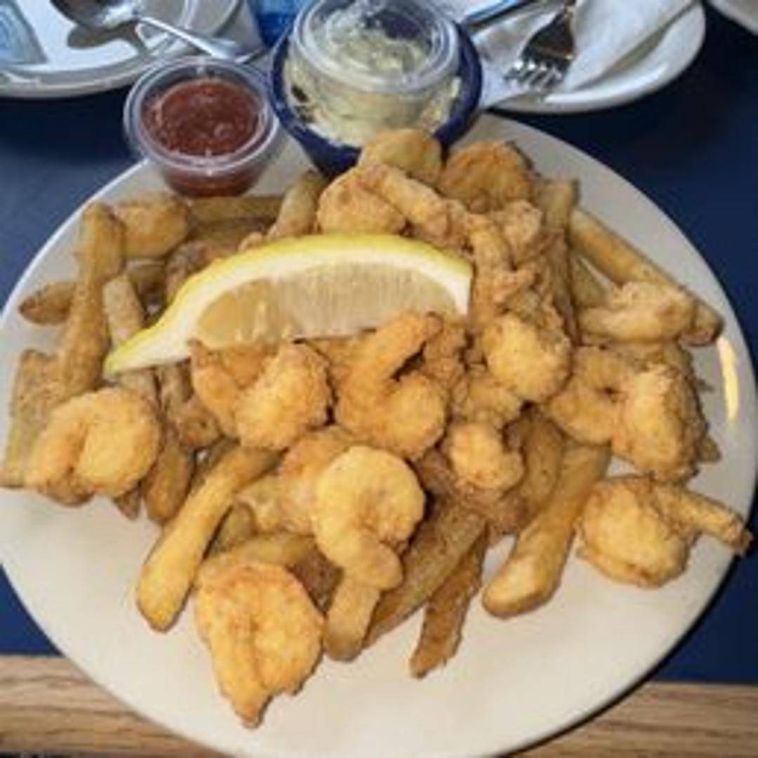 A generous serving of golden-fried shrimp, served with your choice of side dishes. Options typically include french fries, coleslaw, or onion rings. Cocktail sauce and tartar sauce are often included for dipping.