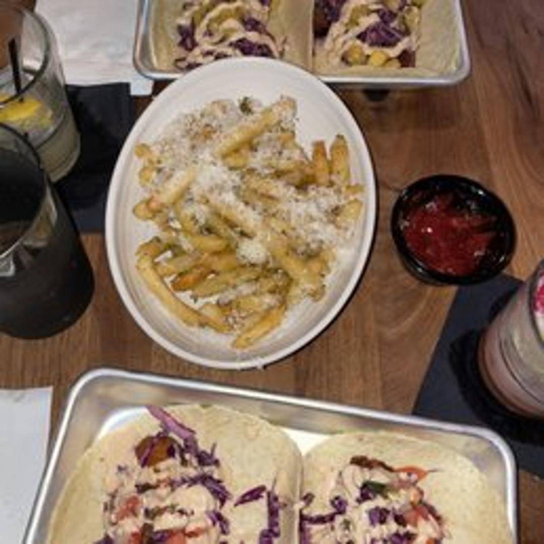 Slow-cooked pulled pork served in warm tortillas, topped with house-made slaw, pico de gallo, and a drizzle of smoky BBQ sauce. Served with a side of tortilla chips and salsa.