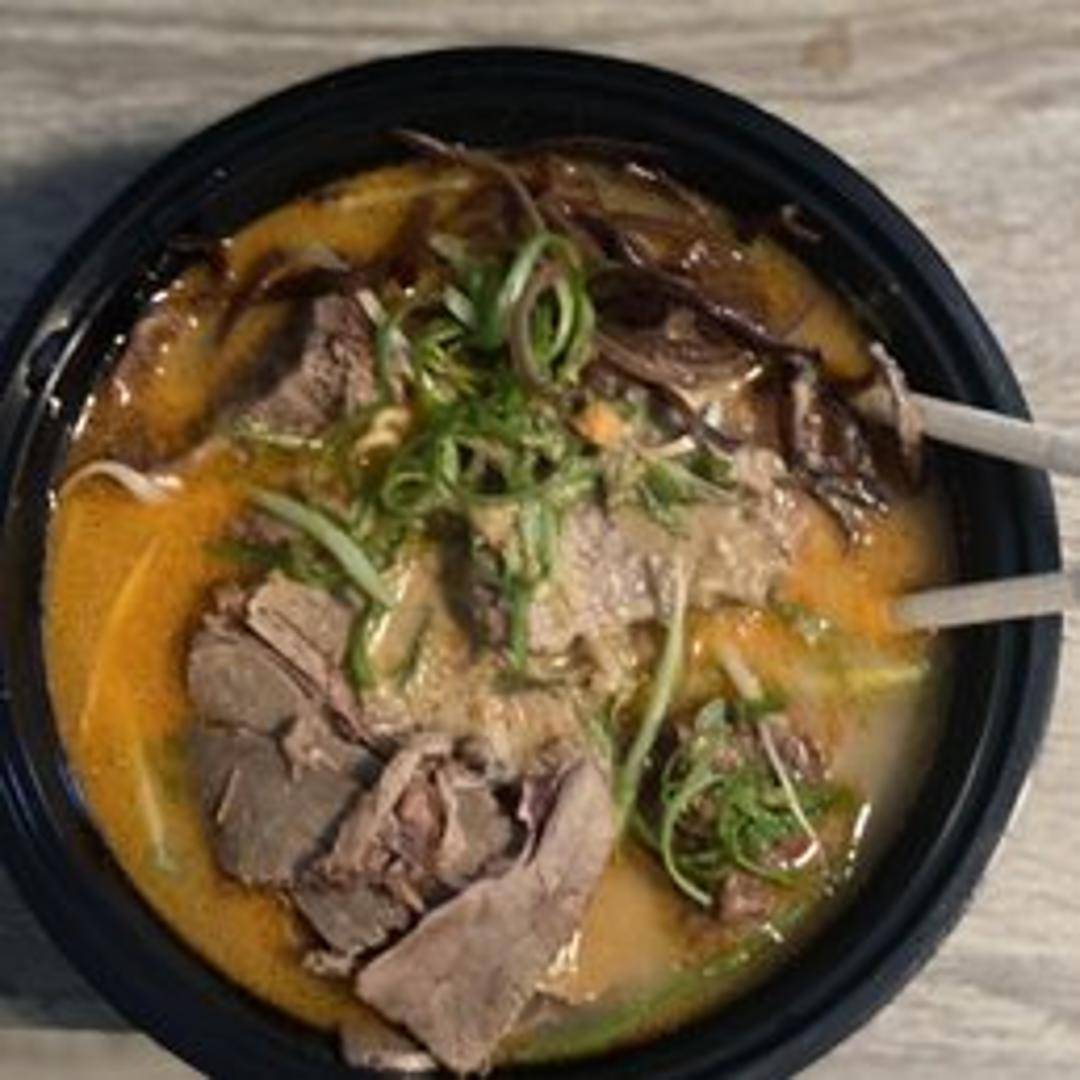 A bold and spicy ramen with tender slices of beef, a fiery broth, and chewy noodles. A kick of heat in every bite.