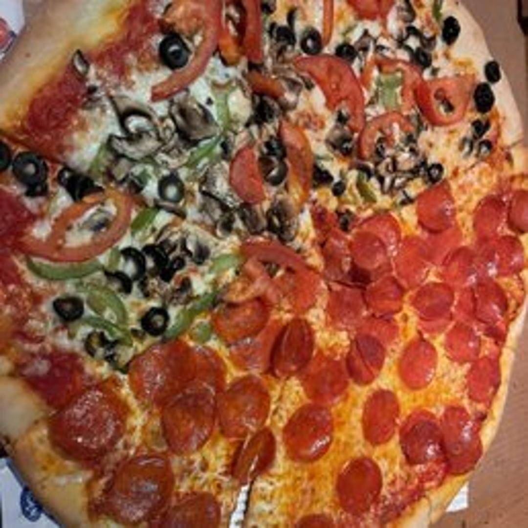 A garden-fresh pizza packed with flavor. Featuring a variety of seasonal vegetables such as bell peppers, onions, mushrooms, olives, and tomatoes, layered on top of our signature tomato sauce and melted mozzarella cheese. A healthy and delicious choice.