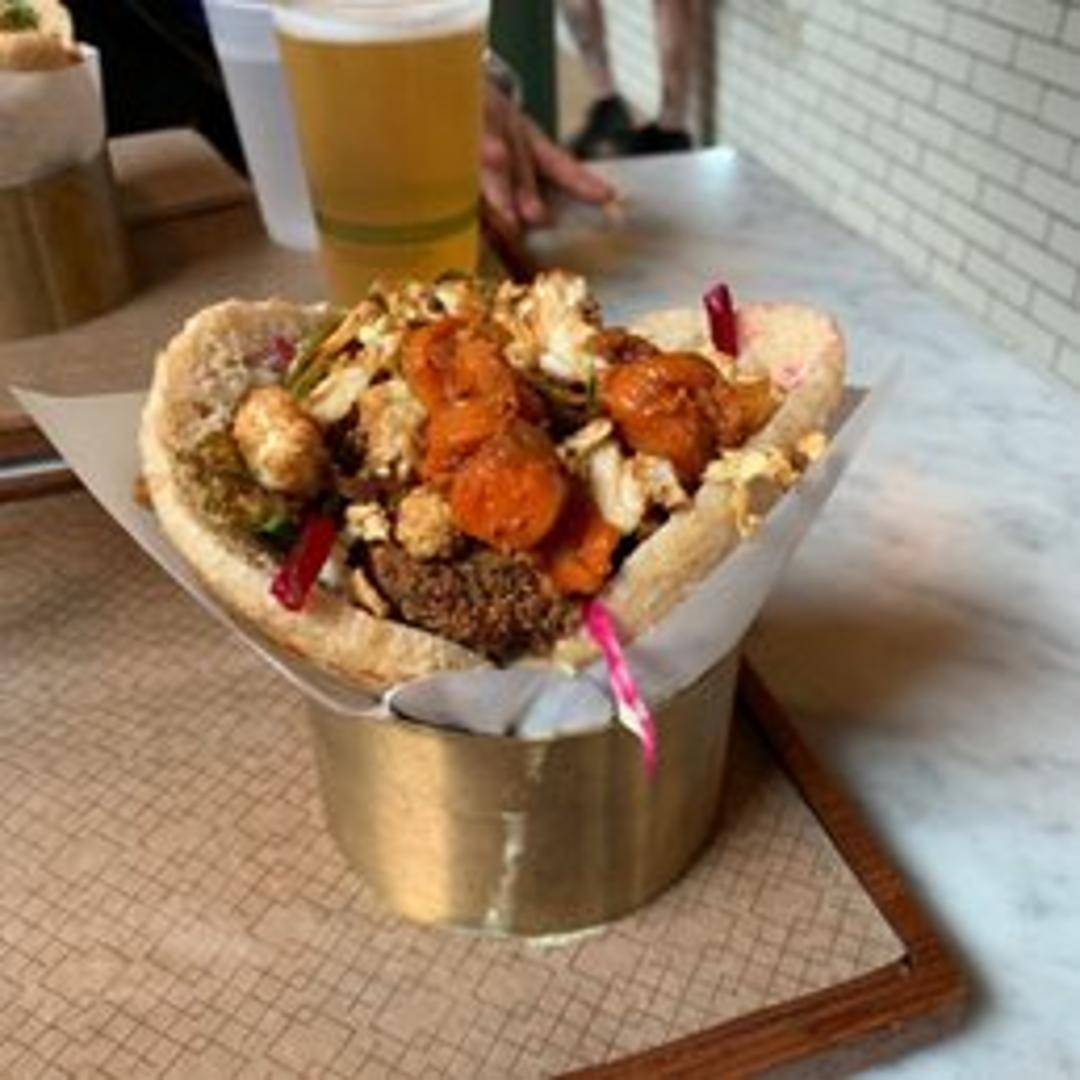 Crispy, savory falafel patties tucked inside a warm, fluffy pita bread. This classic vegetarian sandwich is typically loaded with fresh, crisp vegetables, a drizzle of creamy tahini sauce, and other desired toppings for a flavorful and filling meal.