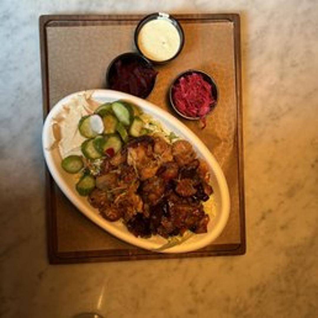 Succulent chicken thigh meat, marinated in an aromatic blend of traditional Mediterranean spices including cumin, coriander, and turmeric. Slow-roasted on a vertical spit and thinly carved, delivering tender, flavorful bites.