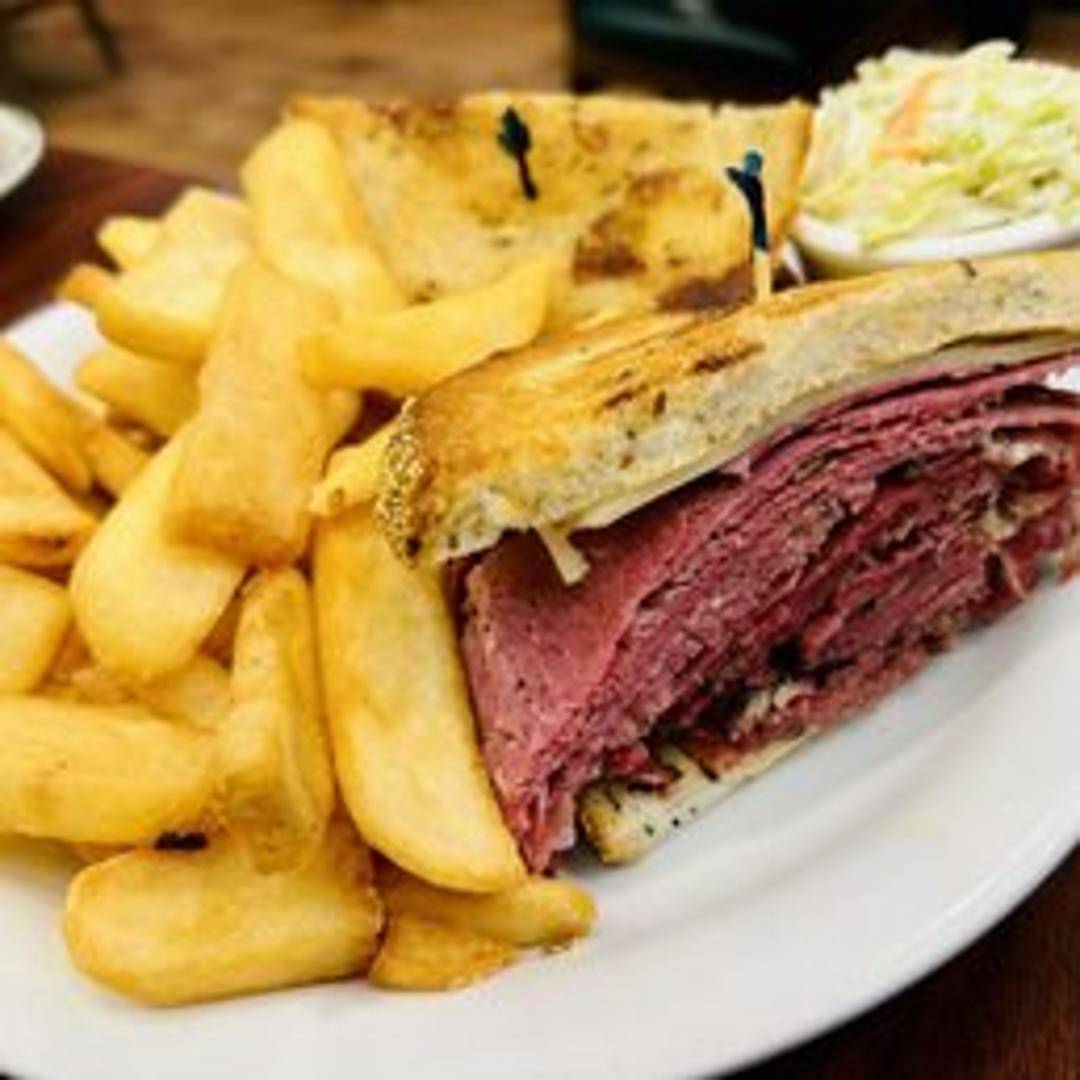 Thinly sliced, perfectly cured corned beef, Swiss cheese, sauerkraut, and Russian dressing grilled to perfection on rye bread.