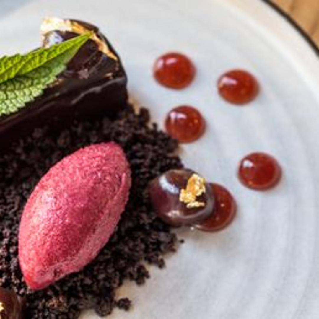 A sophisticated and daring reinterpretation of classic flavors, this dish masterfully blends the rich, buttery indulgence of seared foie gras with the deep, tart notes of cherry and the bittersweet complexity of dark chocolate, reminiscent of a deconstructed Black Forest gateau, all harmoniously composed for a truly unforgettable savory-sweet experience.