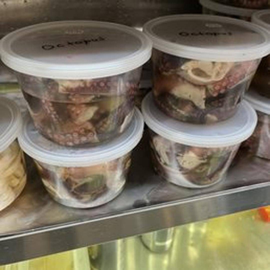 Tender octopus, prepared with olive oil, lemon, and herbs. Served chilled.