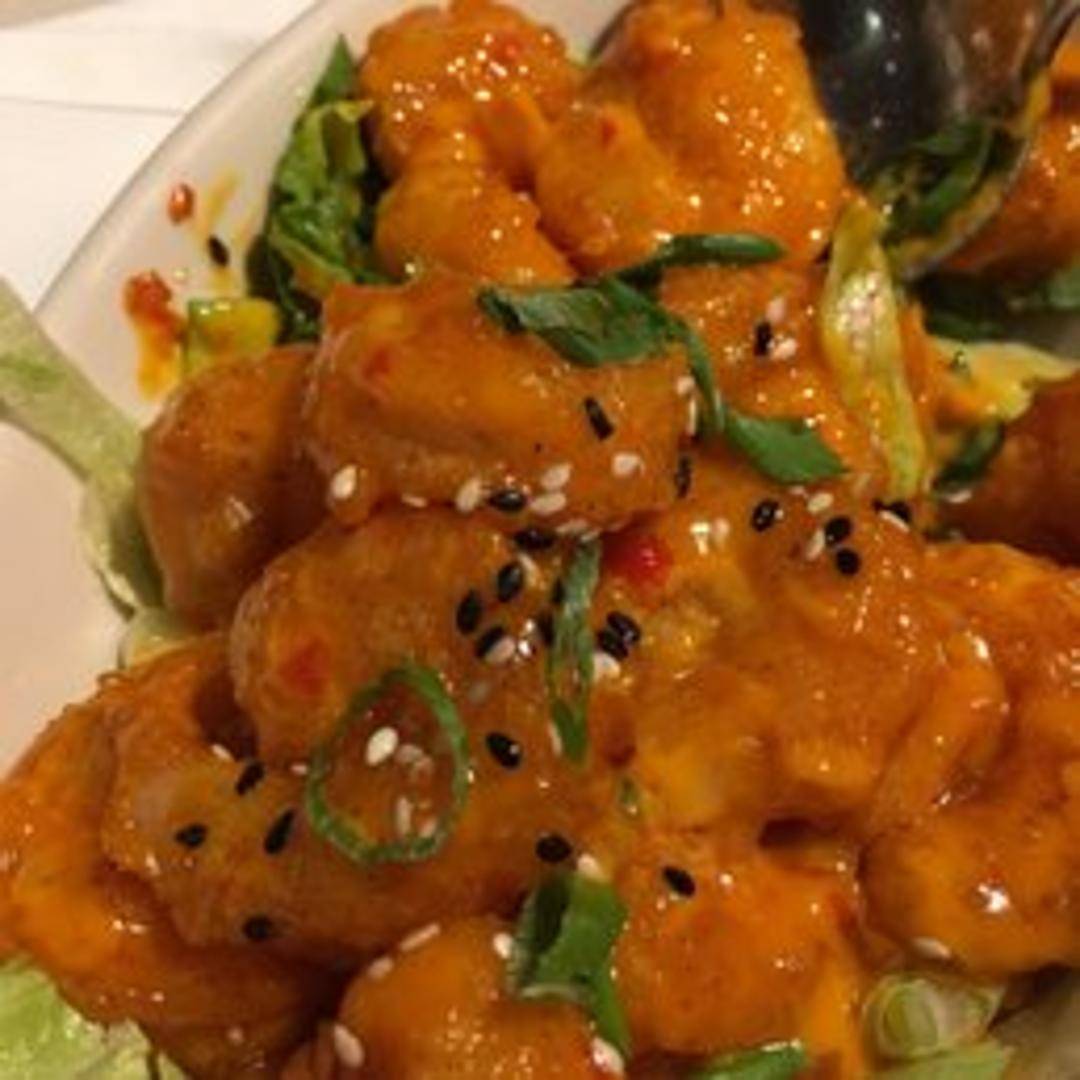 Pan-seared shrimp tossed in a spicy chili sauce, served with a side of rice pilaf and seasonal vegetables.