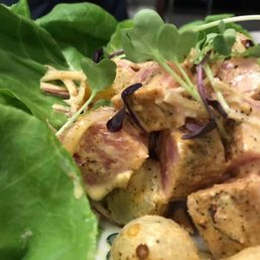 A refreshing and vibrant bowl featuring sushi-grade raw tuna, diced and seasoned with a savory blend of soy sauce, sesame oil, and a touch of spice. Served over a bed of fluffy rice with fresh avocado, crisp cucumber, and a sprinkle of toasted sesame seeds, offering a light, flavorful, and modern culinary experience.