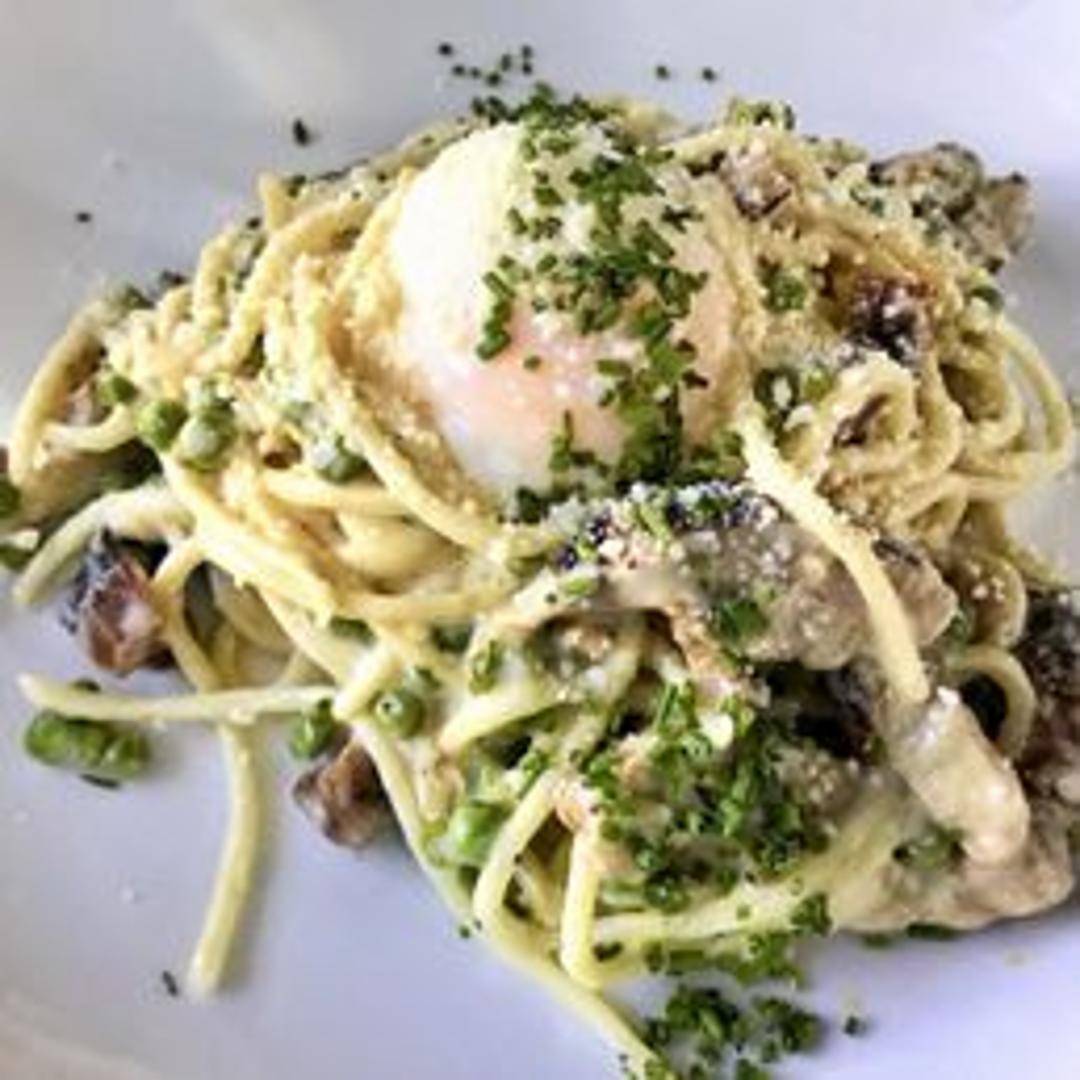 Indulge in our sophisticated take on Chicken Carbonara. Al dente pasta is tossed with pan-seared chicken, crispy pancetta, a rich egg yolk emulsion, and grated Pecorino Romano cheese, creating a luxurious and creamy sauce that clings beautifully to every strand.