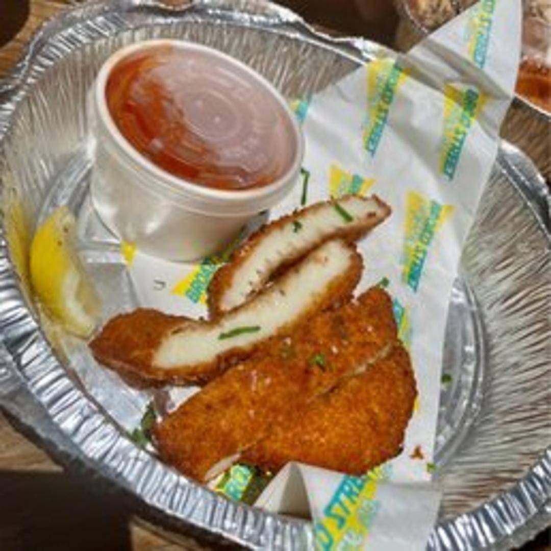 Tender and pan-fried calamari steak, offering a delicate seafood flavor. Served with a lemon wedge and your choice of dipping sauce.