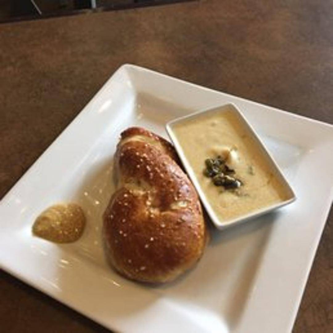 A warm, soft-baked pretzel served with your choice of dipping sauces, such as beer cheese, mustard, or a sweet cream cheese.