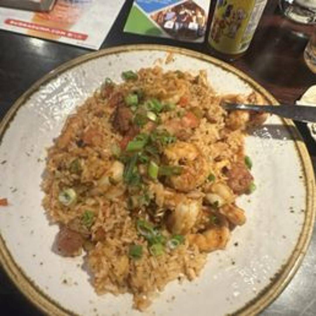 A hearty and flavorful Creole rice dish with shrimp, chicken, sausage, tomatoes, peppers, and onions in a spicy broth.
