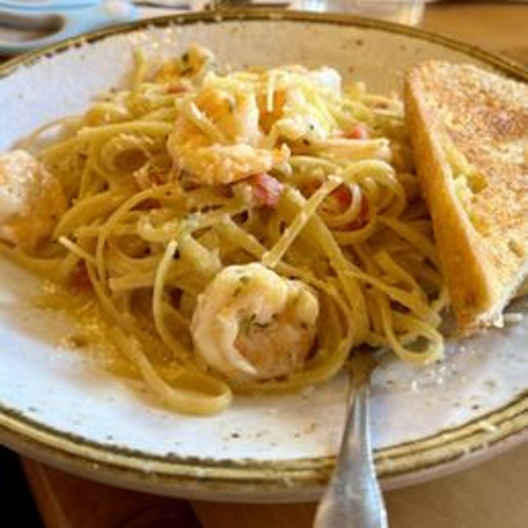 Shrimp sautéed in a garlic butter sauce, served over linguine pasta. A classic Italian-American dish.