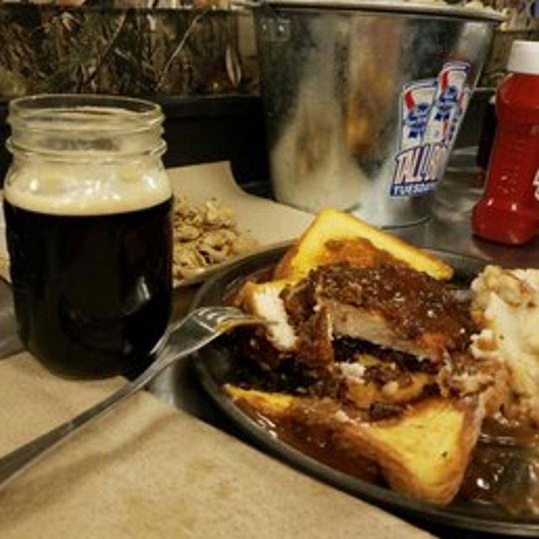 A crispy, golden-brown chicken breast coated in seasoned breading and fried to perfection. Served with creamy gravy and your choice of two sides.
