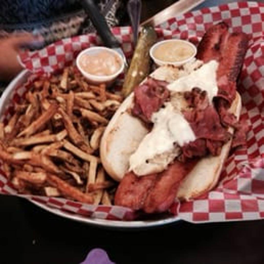 A unique twist on a classic! A grilled hot dog nestled in a hoagie roll, topped with thinly sliced Philly steak, melted cheese, and sautéed onions and peppers.