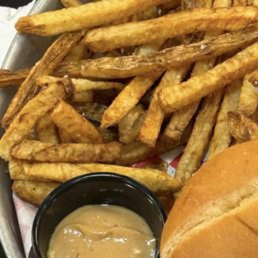 A juicy burger patty cooked in butter for extra flavor, topped with melted cheese and your choice of toppings on a toasted bun.