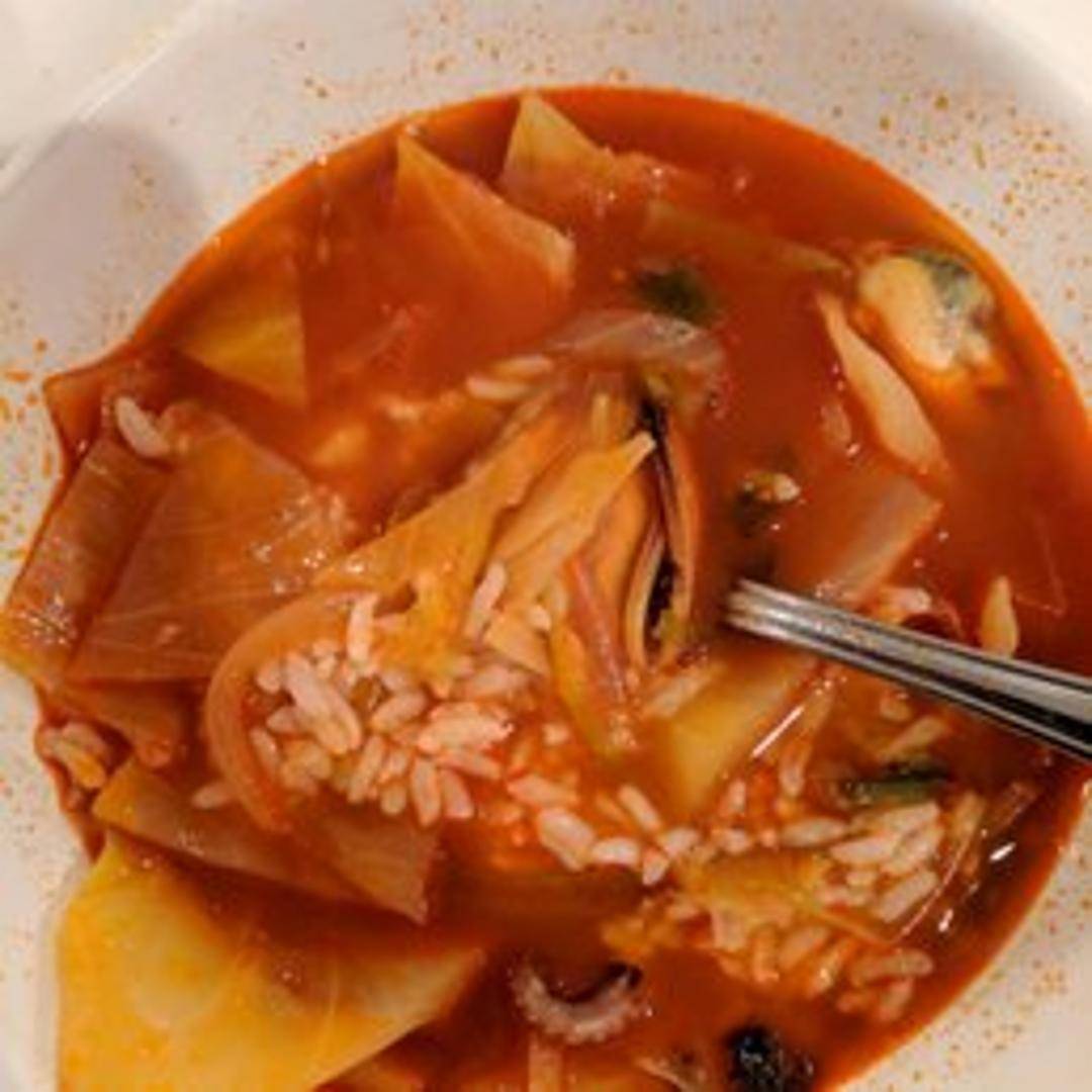 A fiery and flavorful Korean spicy seafood noodle soup that is deeply satisfying. This vibrant dish features a generous assortment of fresh seafood like mussels, shrimp, and squid, along with pork and various vegetables such as cabbage, onions, and zucchini, all served in a rich, chili-infused broth with chewy noodles. Known for its addictive spiciness and robust umami.