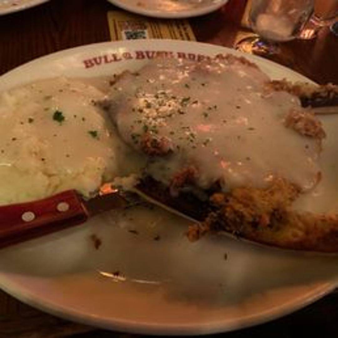 A crispy, breaded chicken breast smothered in creamy country gravy. Served with mashed potatoes and your choice of side.