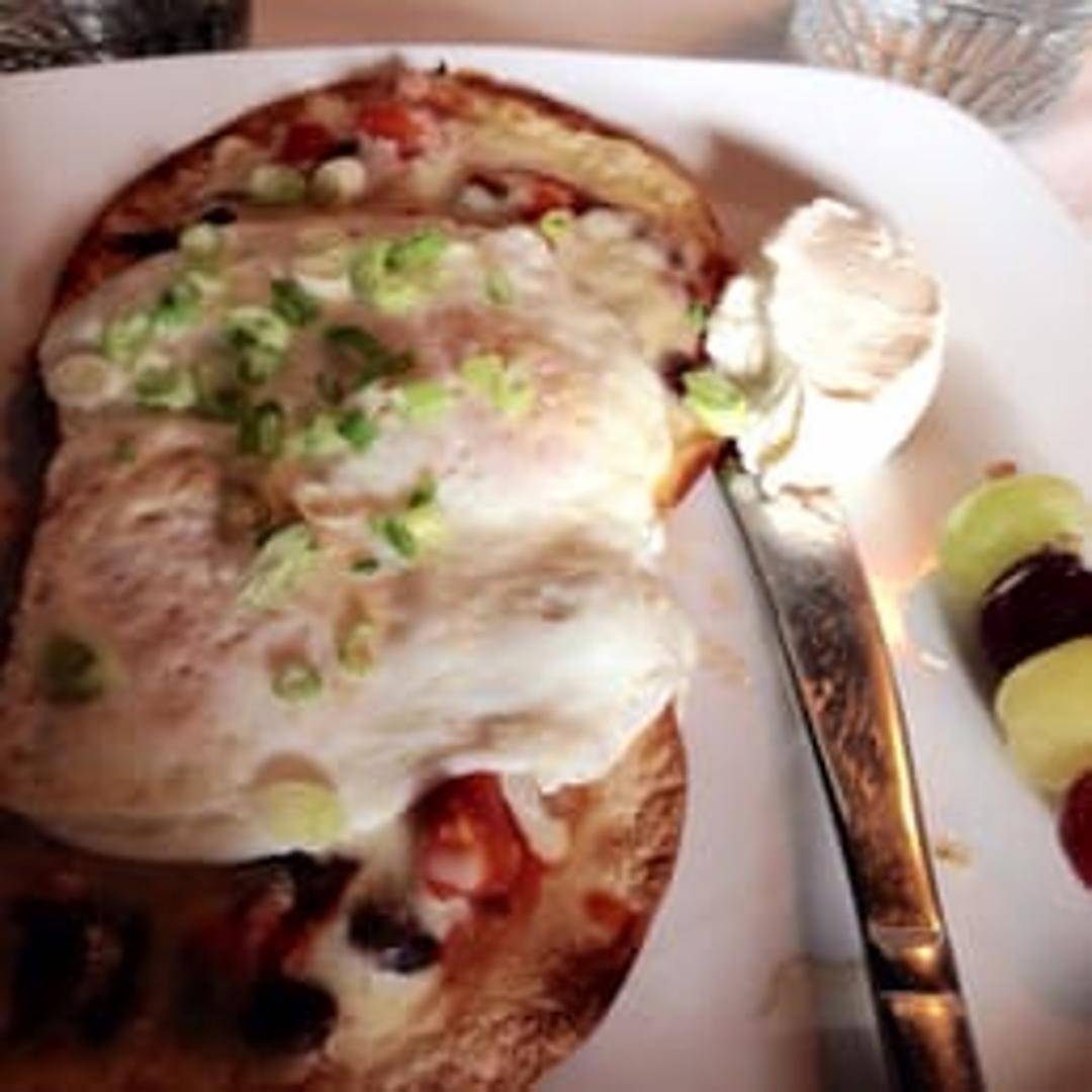 Two fried eggs served on lightly fried corn tortillas, smothered in a spicy ranchero sauce. Topped with melted cheese, sour cream, and fresh cilantro. Served with refried beans and Mexican rice.