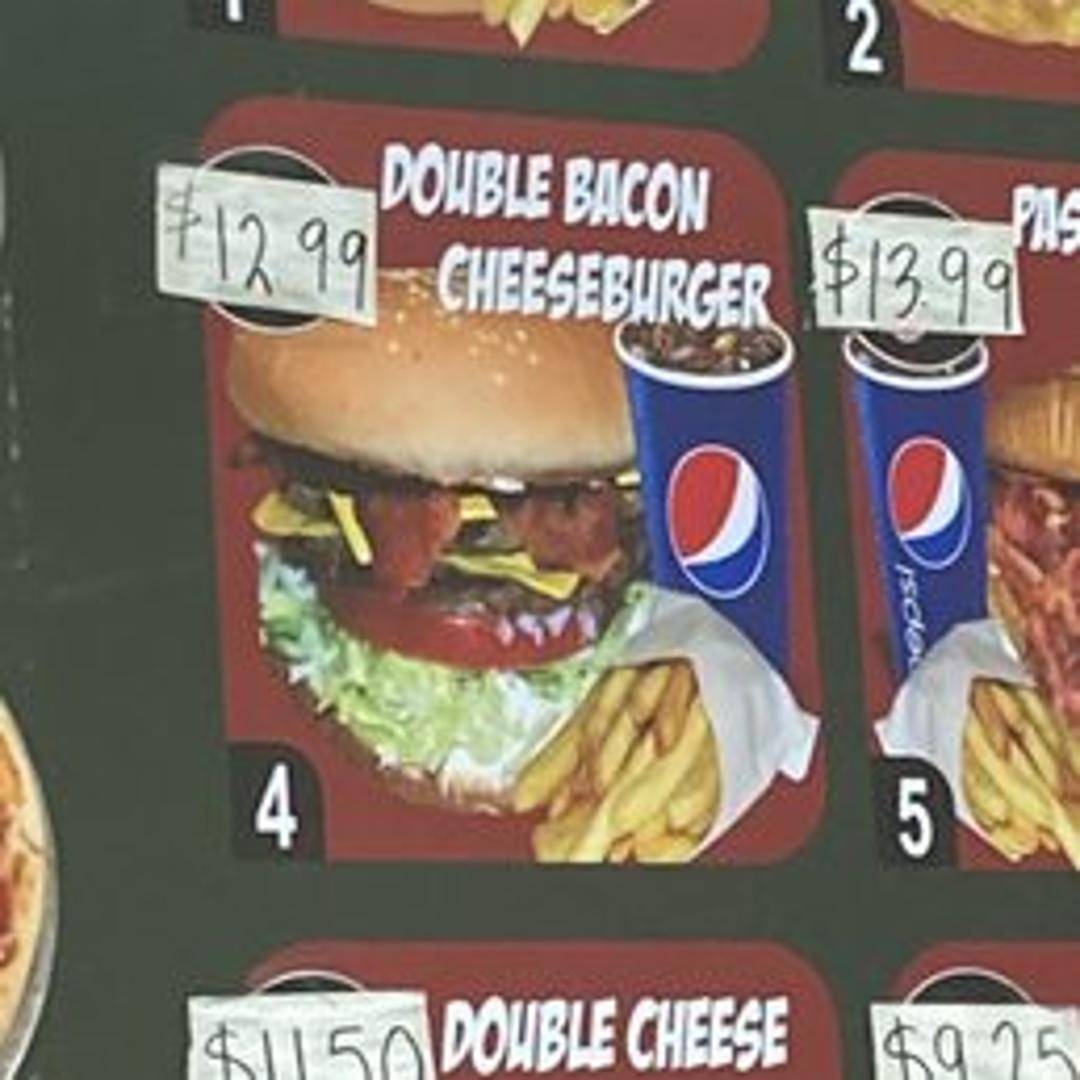 Two juicy beef patties topped with melted cheese, crispy bacon, lettuce, tomato, onion, and your choice of condiments, served on a toasted bun.