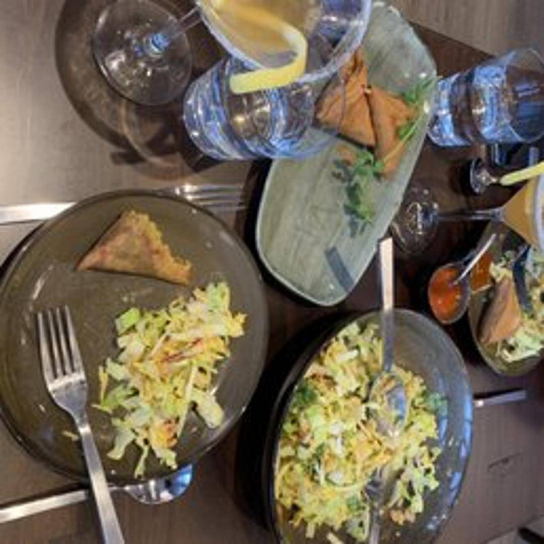 Crispy, triangular pastries filled with a spiced mixture of potatoes, peas, and lentils. Deep-fried to a golden brown and often served with a chutney or dipping sauce.