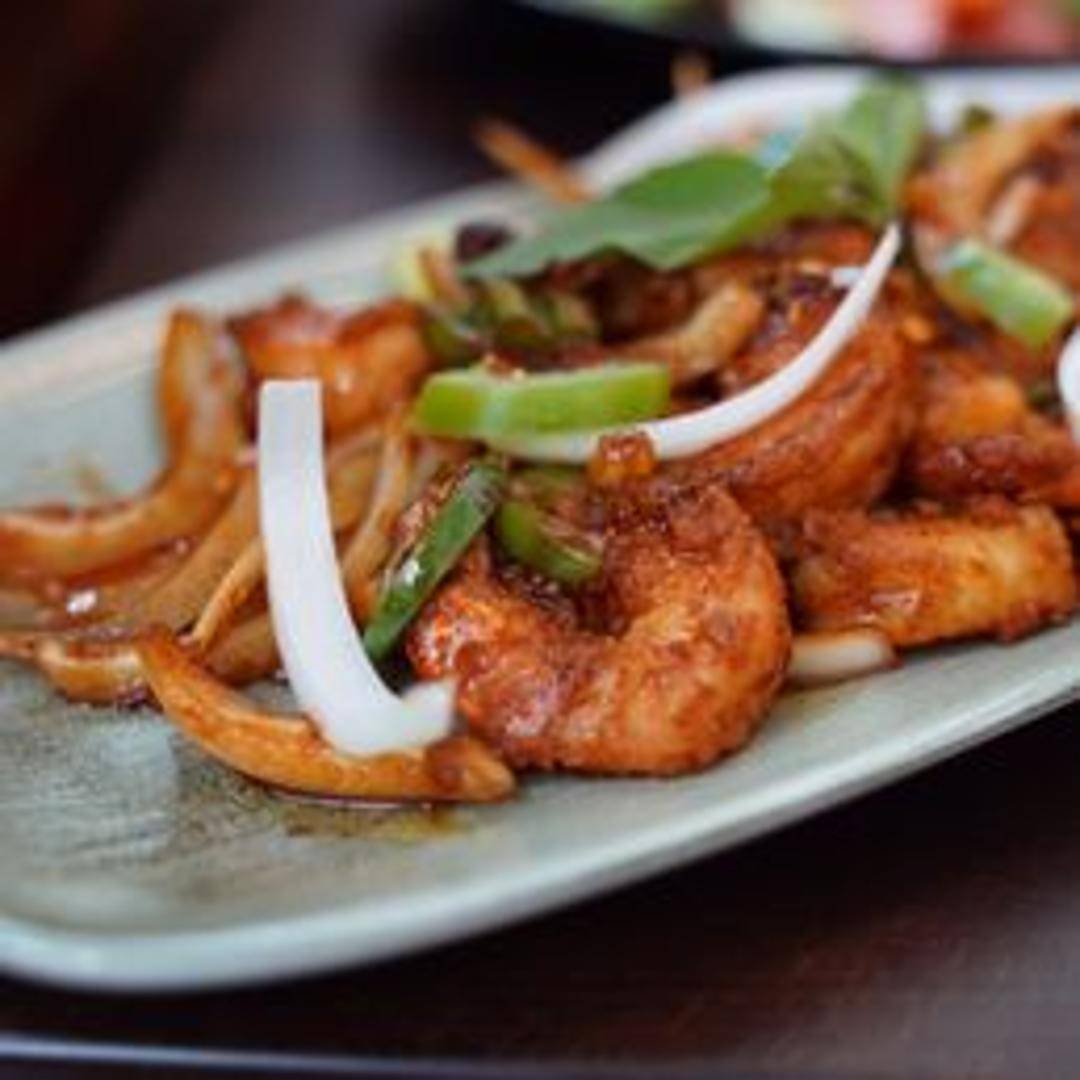 Succulent shrimp prepared in a traditional Burmese style, featuring a unique blend of aromatic spices and flavorful sauces. Expect a savory and potentially slightly tangy or sweet profile, depending on the specific preparation. Served with a side of rice.