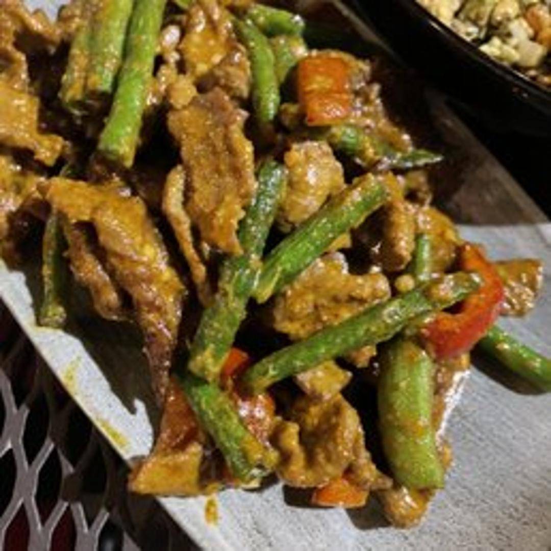 A flavorful curry dish prepared with minimal liquid, resulting in a concentrated and intense flavor profile. Typically features a blend of spices, herbs, and vegetables cooked together until tender and infused with aromatic flavors. Often garnished with fresh herbs or crispy fried onions. Served with a side of rice.