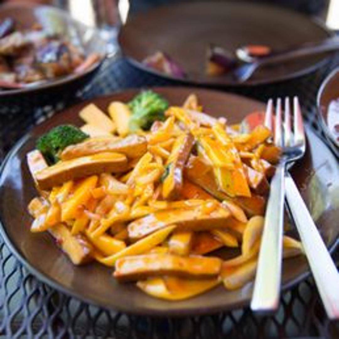 Crispy fried tofu tossed in a sweet and tangy mango sauce with bell peppers, onions, and a hint of chili. Served with steamed rice.