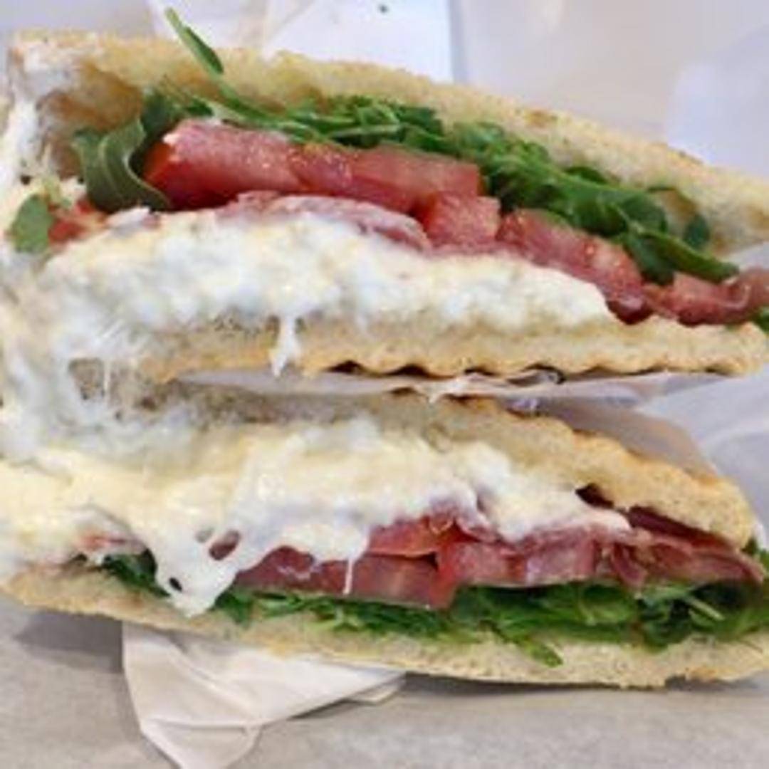 An elevated panini featuring creamy burrata cheese infused with the luxurious aroma of truffle oil. The burrata is melted between slices of grilled panini bread with a layer of prosciutto and a drizzle of truffle aioli. Served warm and pressed to perfection.