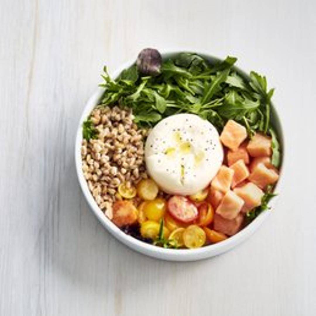 A vibrant and nourishing bowl featuring sustainably sourced grilled salmon, served over a bed of quinoa or brown rice (specify preference). Accompanied by a colorful medley of roasted seasonal vegetables, a sprinkle of toasted seeds, and a light, zesty lemon-herb vinaigrette.