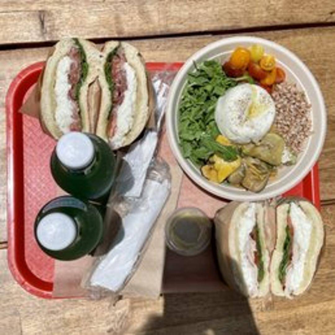 A flavorful and vegetarian-friendly bowl featuring your choice of quinoa or brown rice (specify preference), topped with a vibrant mix of seasonal roasted vegetables and a generous dollop of homemade basil pesto. Garnished with toasted pine nuts and a sprinkle of Parmesan cheese.
