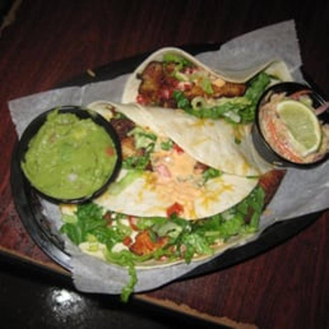 Grilled or blackened white fish seasoned with Cajun spices, served in a warm flour or corn tortilla. Topped with shredded cabbage, a creamy sauce (like chipotle mayo or aioli), and pico de gallo or a similar fresh salsa. Lime wedges are often included.