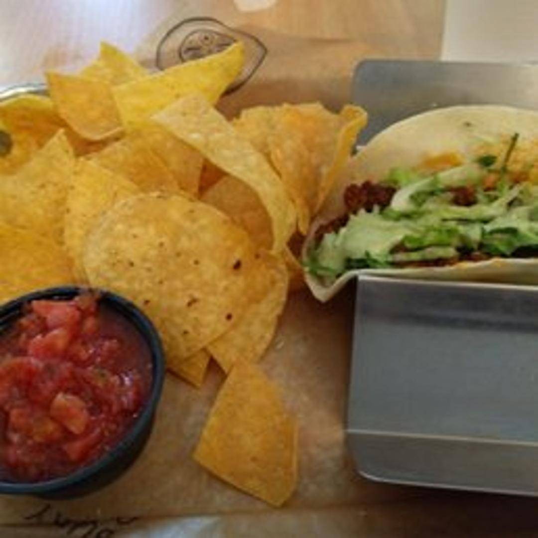 A warm flour tortilla filled with seasoned ground beef, rice, black beans, cheese, and your choice of salsa, sour cream, and guacamole.