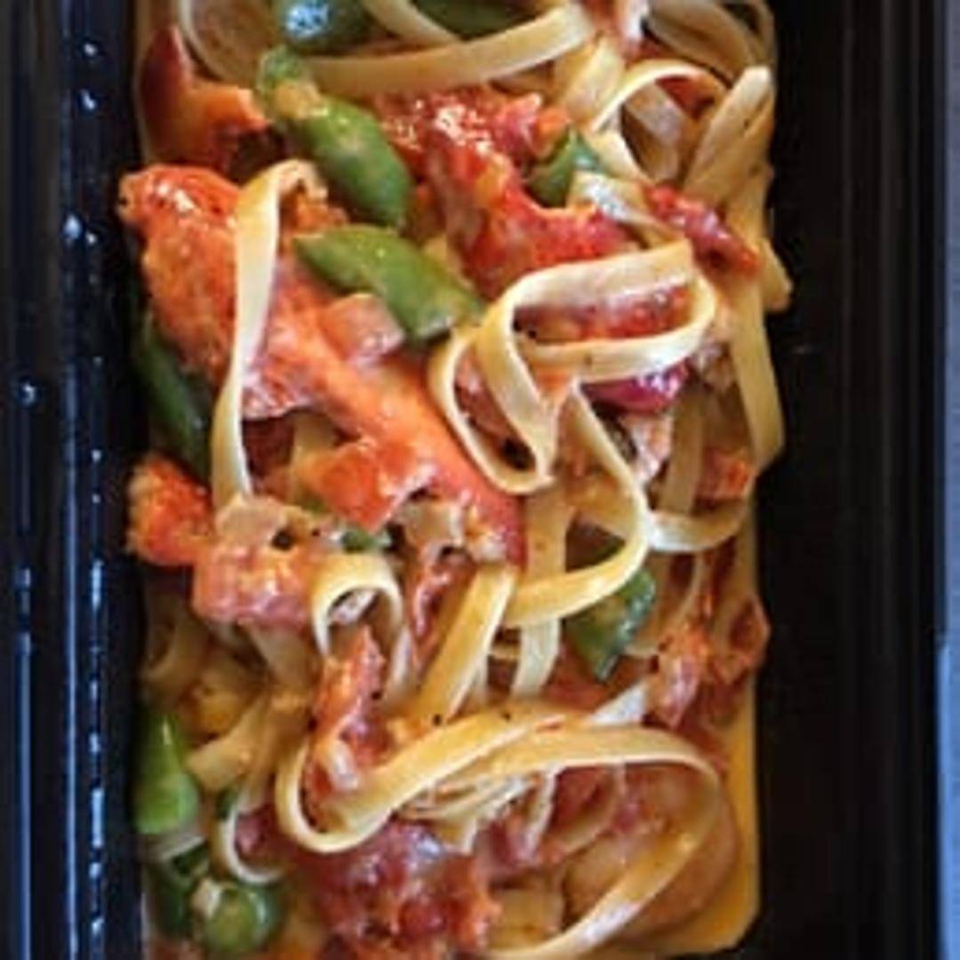Lobster and shrimp sautéed with asparagus, mushrooms, and a creamy Parmesan sauce, tossed with linguine pasta.
