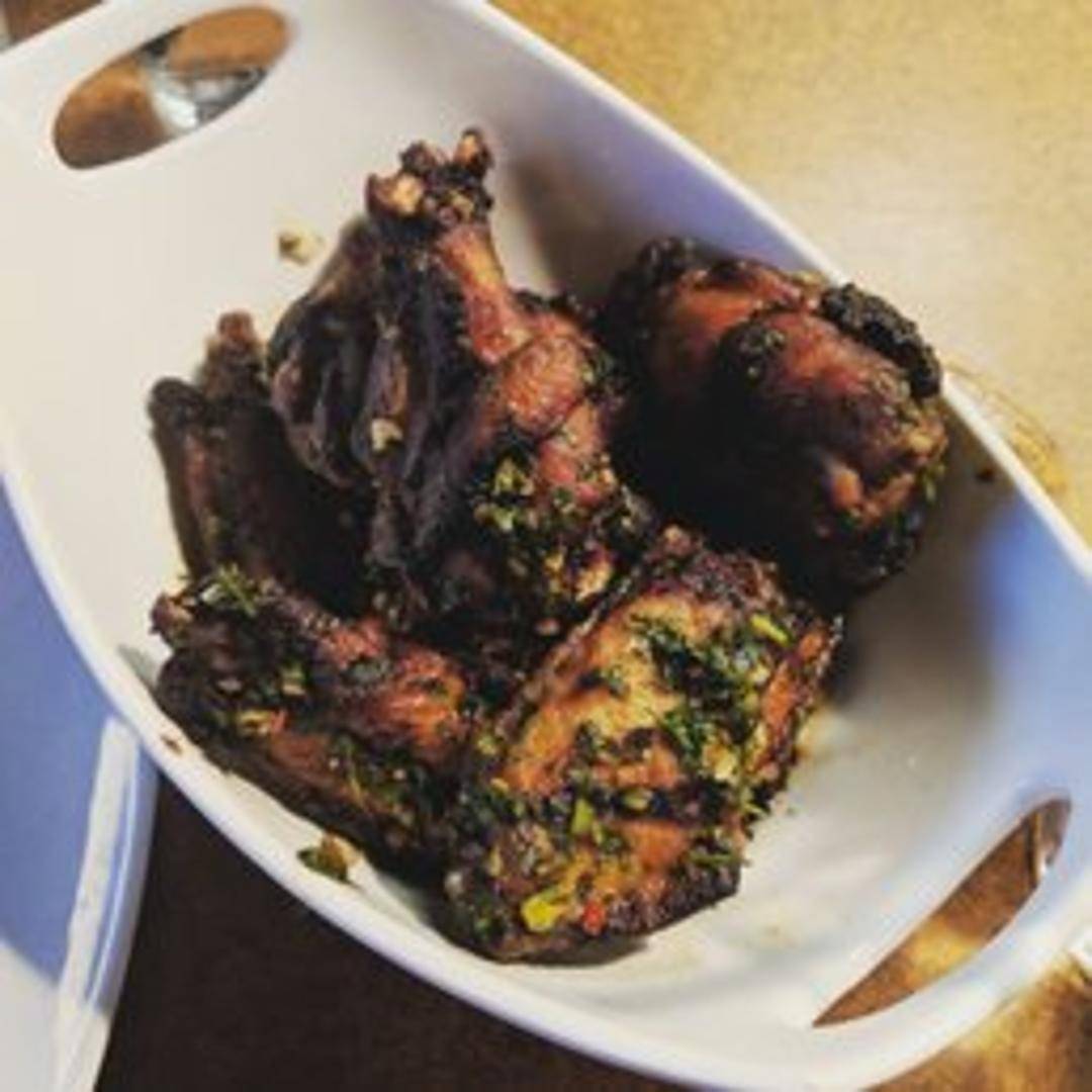 Experience our crispy chicken wings, generously tossed in a vibrant and zesty chimichurri sauce. This herbaceous blend of fresh parsley, cilantro, garlic, olive oil, and vinegar infuses each wing with a bright, tangy, and slightly spicy kick, offering a unique and flavorful twist on a classic appetizer.
