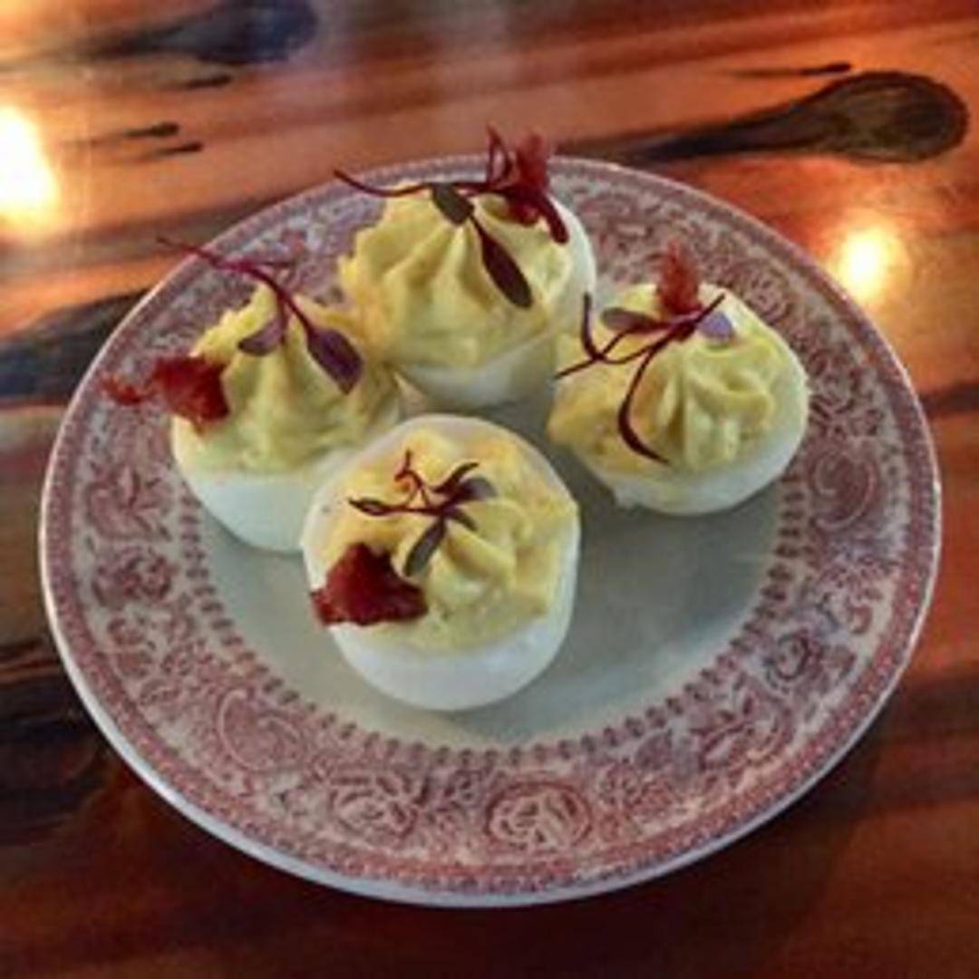 A timeless classic, our Deviled Eggs offer a creamy, savory filling perfectly seasoned and adorned with a touch of paprika and fresh chives, creating an irresistible start to your meal.