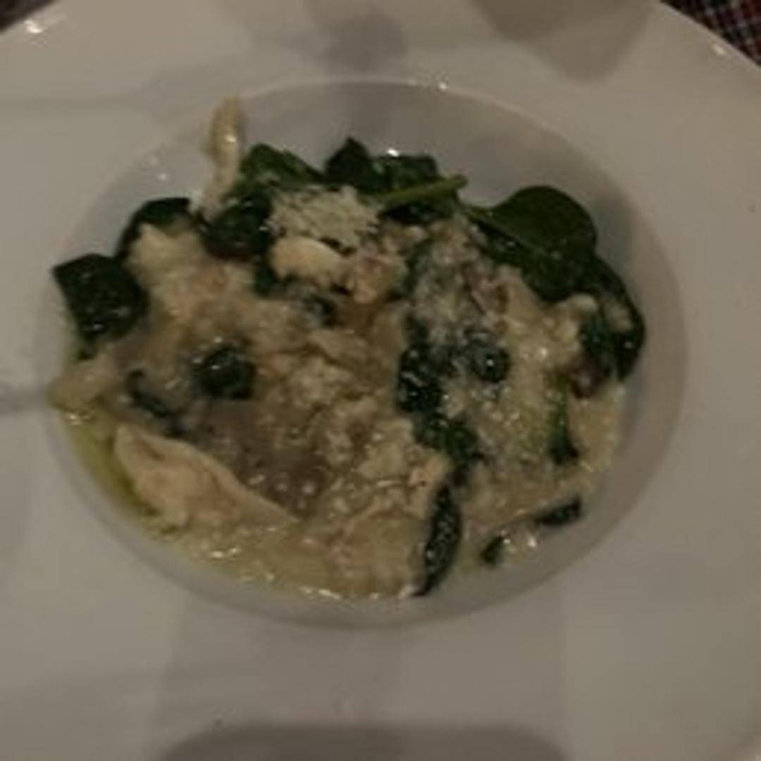 Creamy Italian Arborio rice cooked with a medley of fresh mushrooms, often including varieties such as cremini, porcini, and shiitake. Prepared with vegetable broth, white wine, Parmesan cheese, and herbs. Garnished with fresh parsley and shaved Parmesan.
