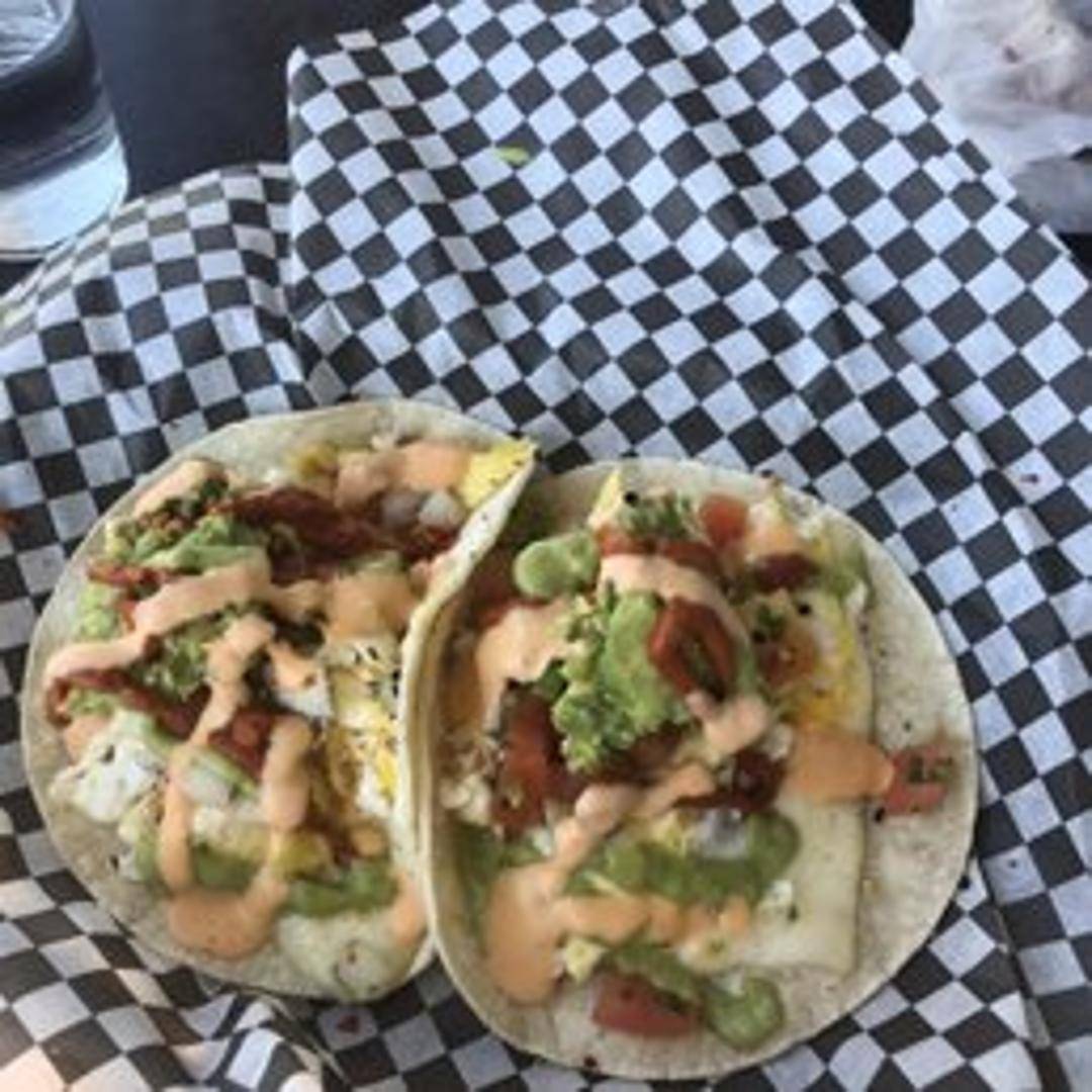 Two warm flour tortillas filled with scrambled eggs, your choice of protein (bacon, sausage, or chorizo), cheddar cheese, and pico de gallo. Served with a side of salsa.