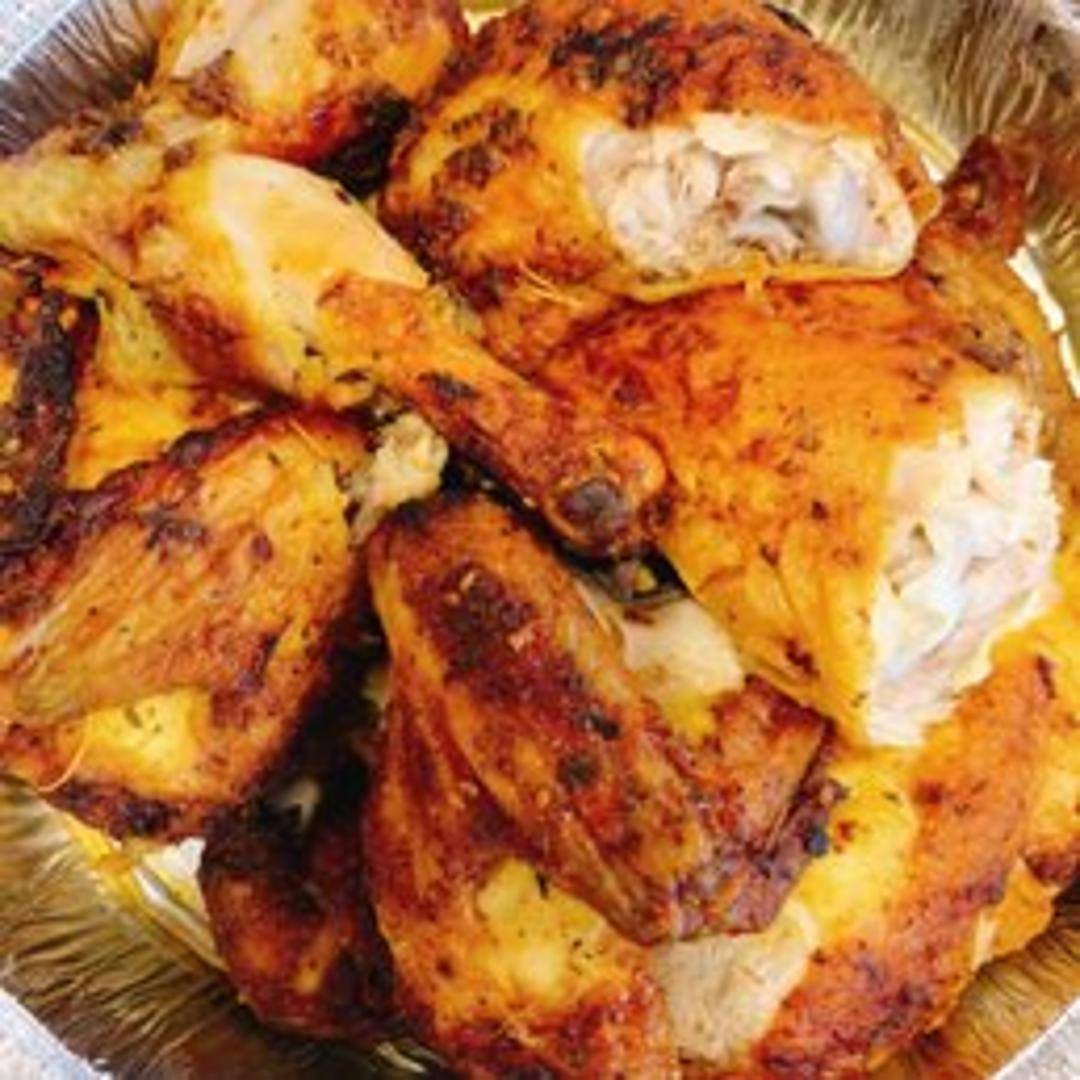 A whole rotisserie chicken, expertly seasoned with Byrdie's signature blend of herbs and spices, slow-roasted to tender, juicy perfection with crispy skin.