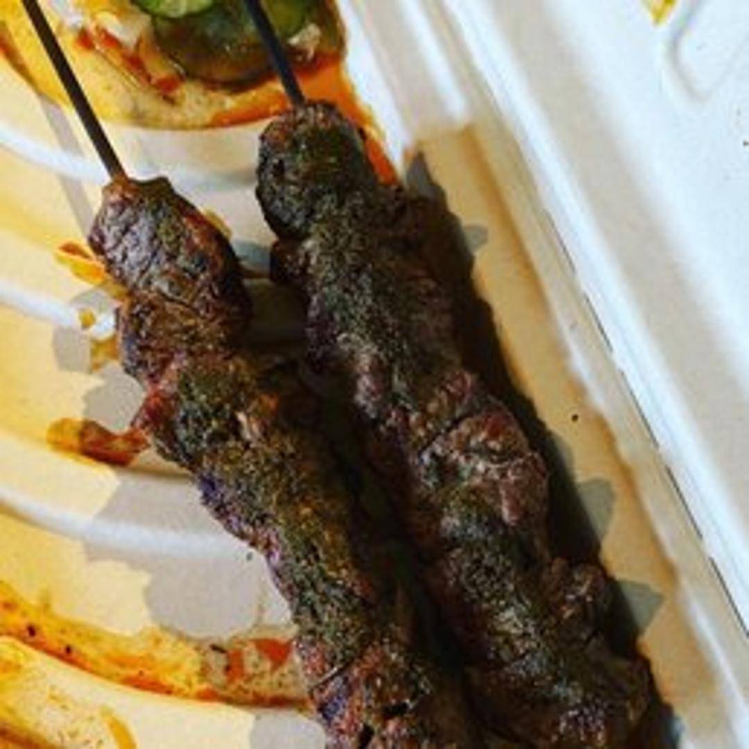Marinated pork skewers, grilled to perfection. The marinade typically includes a blend of Moorish-inspired spices such as cumin, paprika, turmeric, and coriander, offering a flavorful and aromatic experience.