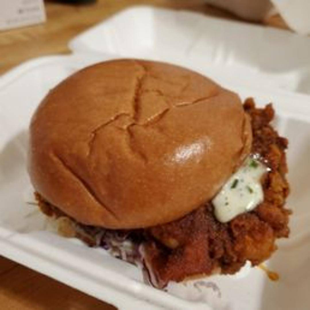 A juicy, breaded chicken fillet seasoned with a blend of hot spices and served on a toasted bun. Topped with crisp lettuce, sliced tomatoes, and a creamy, cooling sauce.