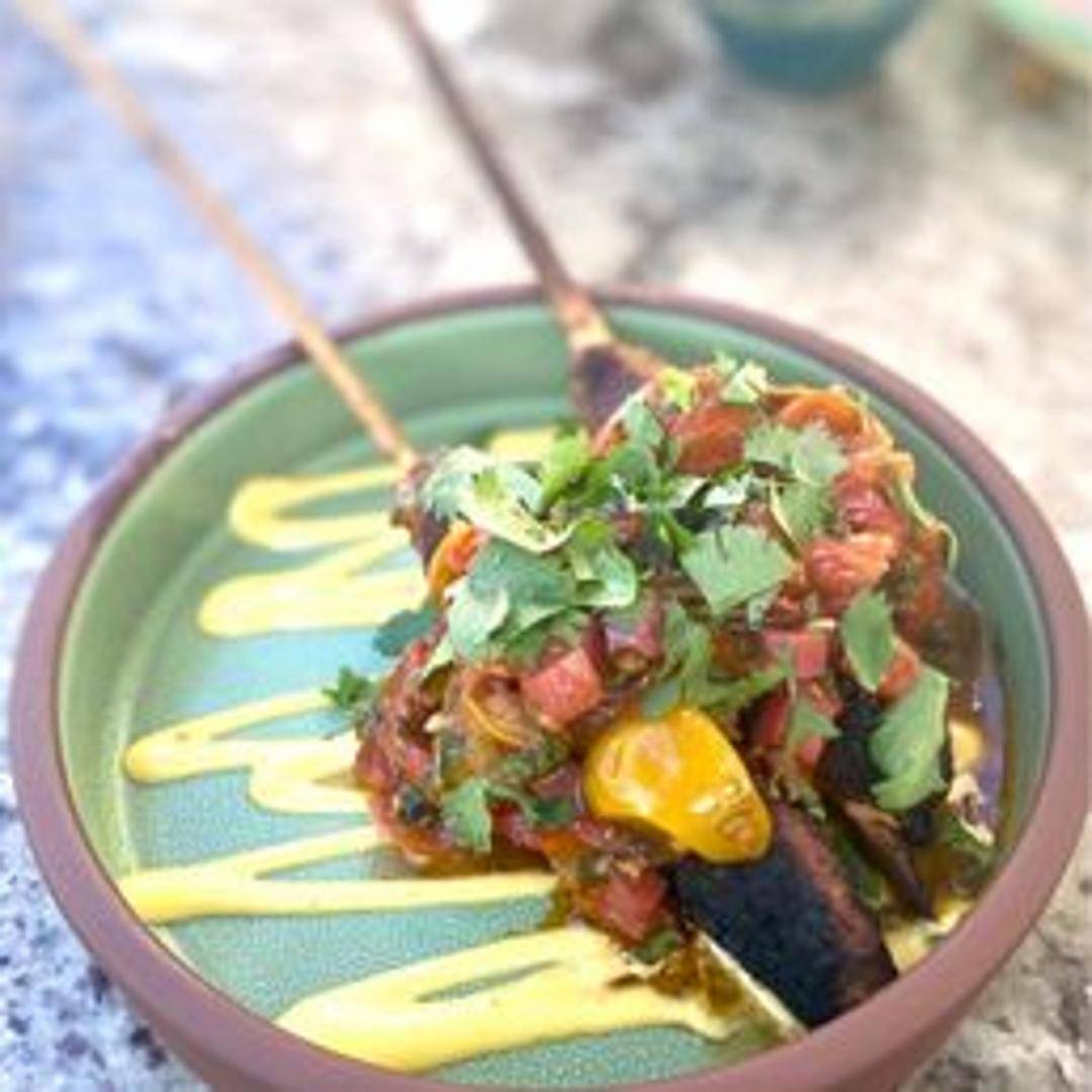 Spicy and savory chorizo sausage grilled on skewers, perfect for sharing. Served with a flavorful dipping sauce.