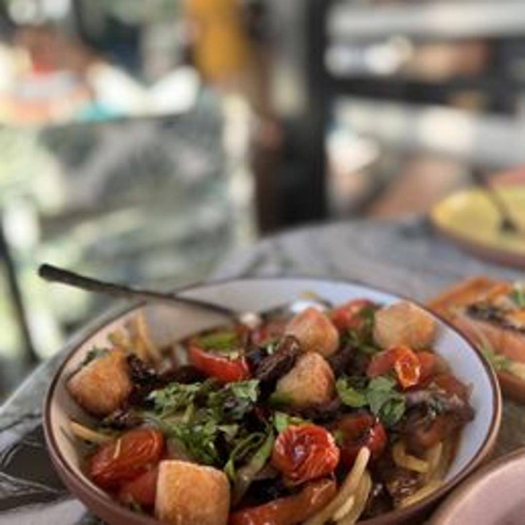 Tender and flavorful skirt steak cooked over a wood fire, resulting in a slightly smoky and charred exterior. Served with a complementary sauce and side.