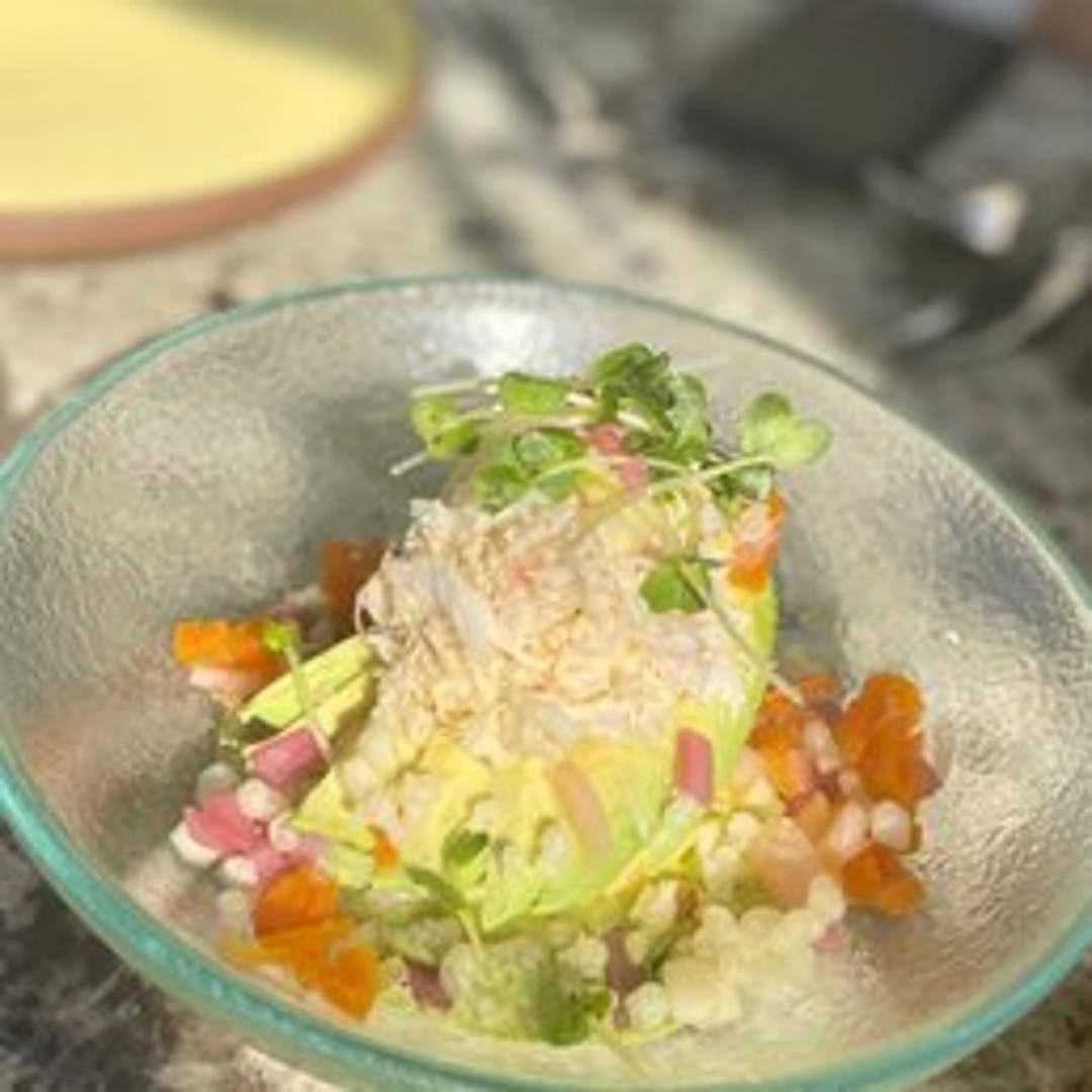 A layered Peruvian dish featuring mashed yellow potatoes seasoned with lime juice and aji amarillo (Peruvian yellow chili pepper), layered with a creamy crab filling. Often garnished with avocado and olives.