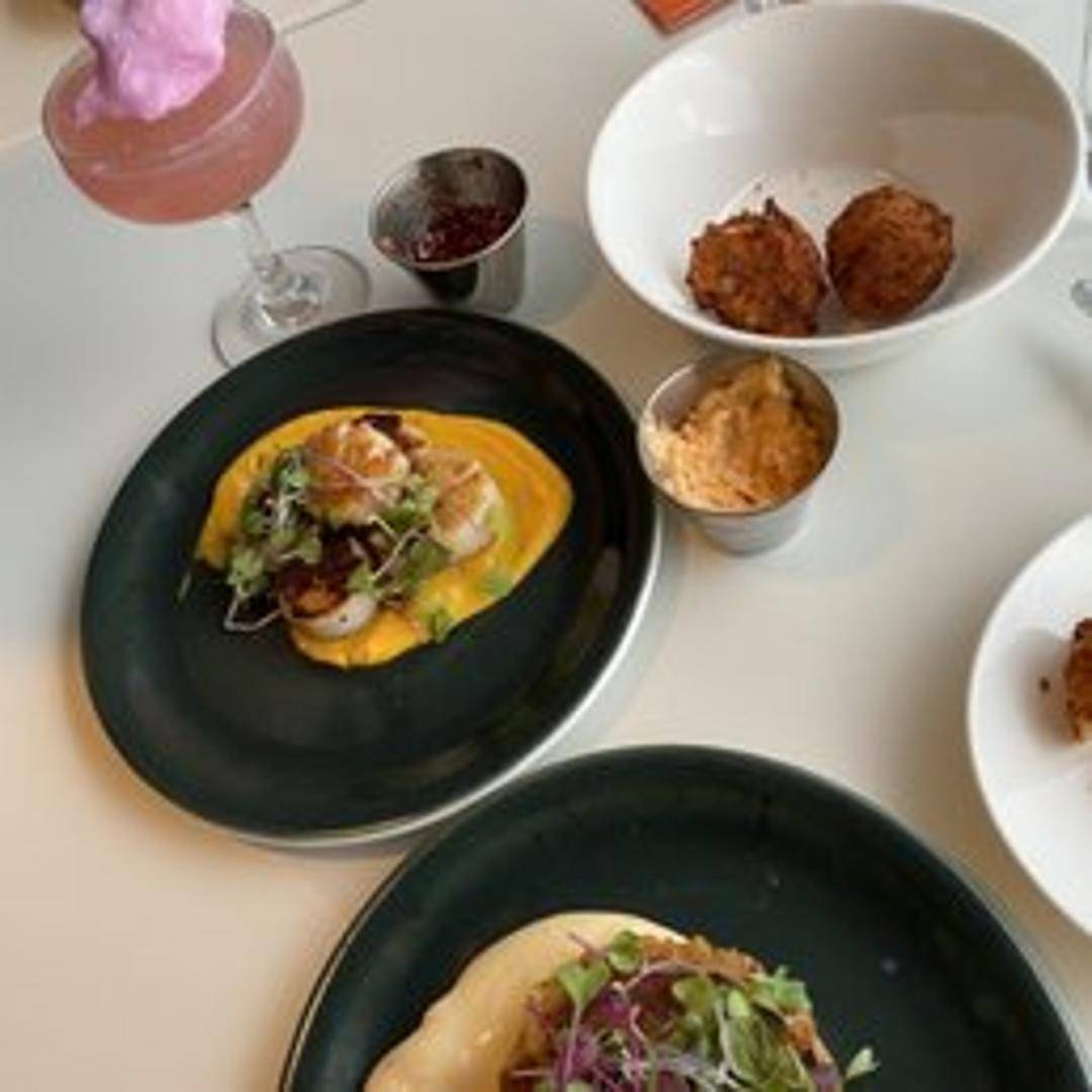 Two golden-brown, pan-seared crab cakes crafted with lump blue crab meat, minimal filler, and seasoned to perfection. Served with a tangy lemon-dill aioli and a crisp, refreshing side salad.