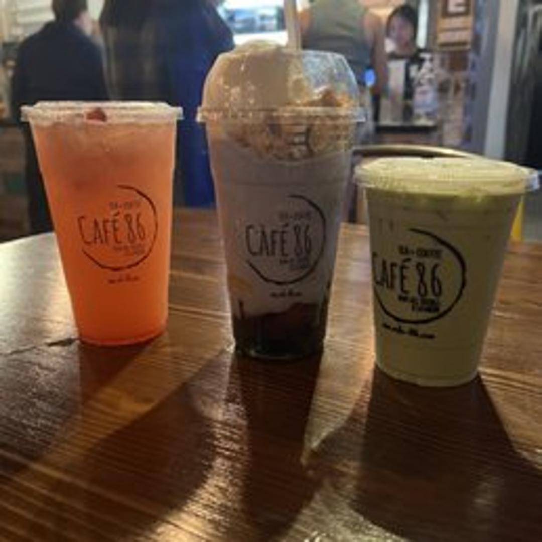 A layered latte drink that combines the earthy notes of matcha with the sweet and slightly tart flavor of blueberry, mixed with milk to create a sweet and aromatic beverage served hot or iced.